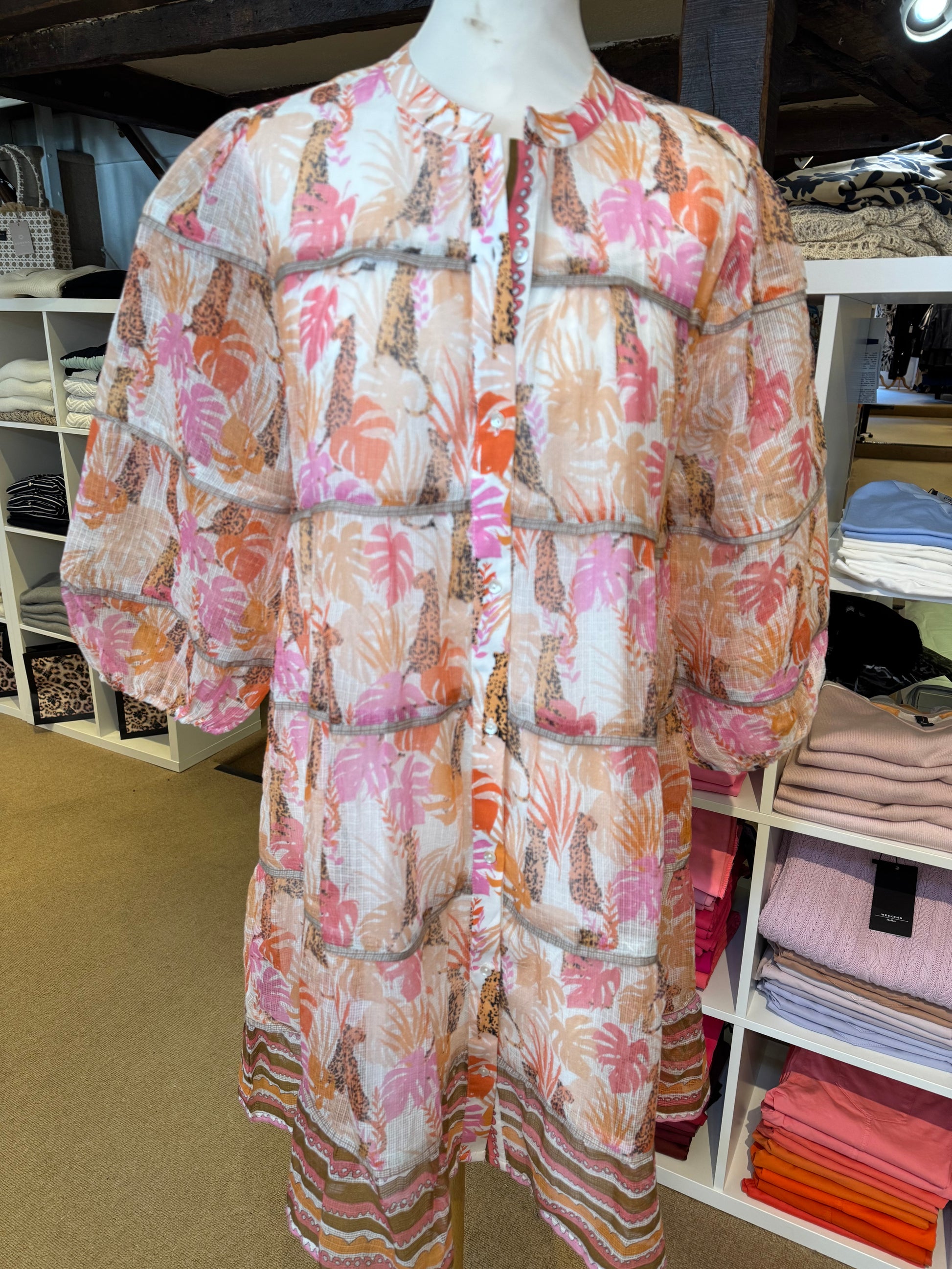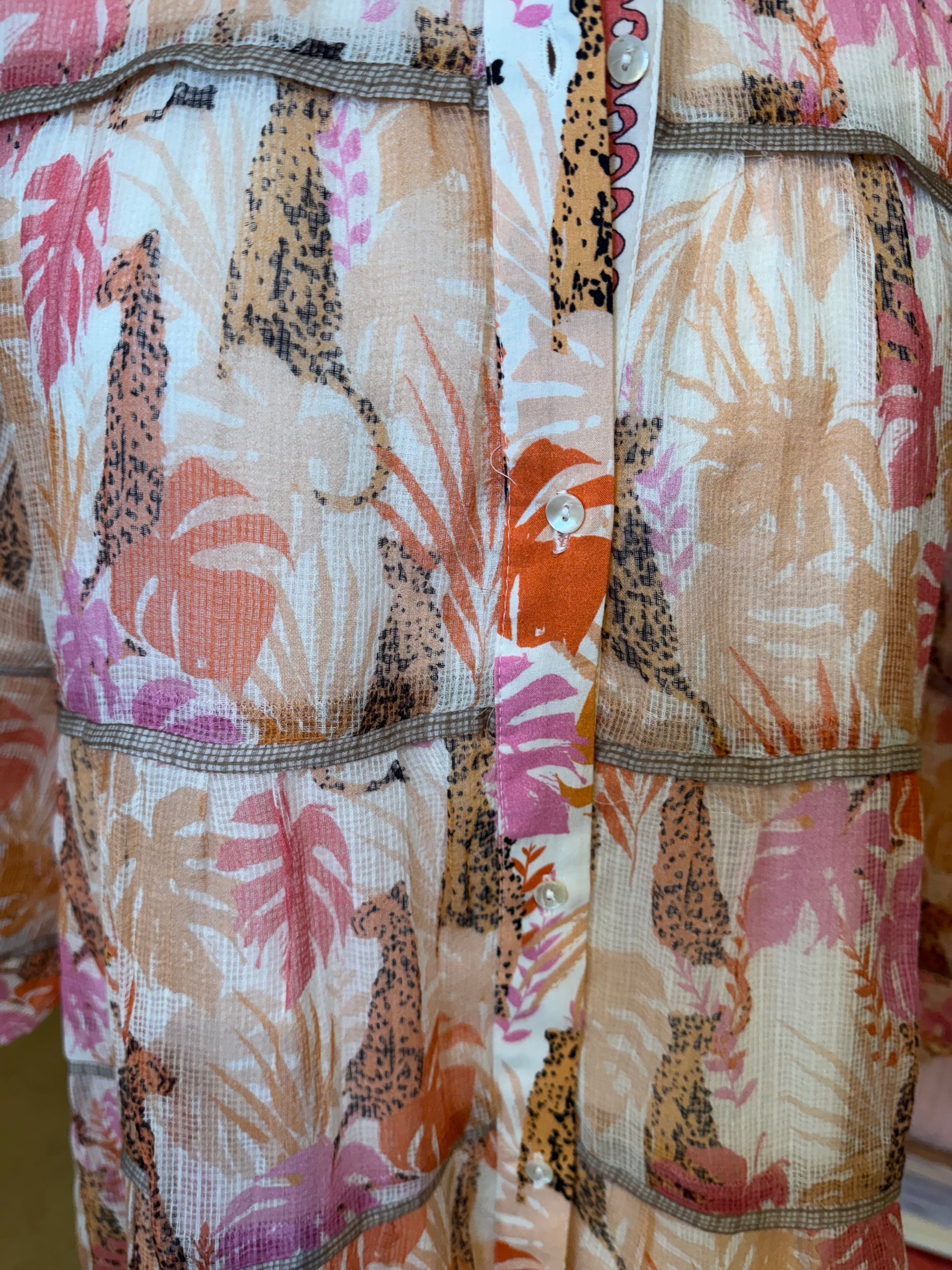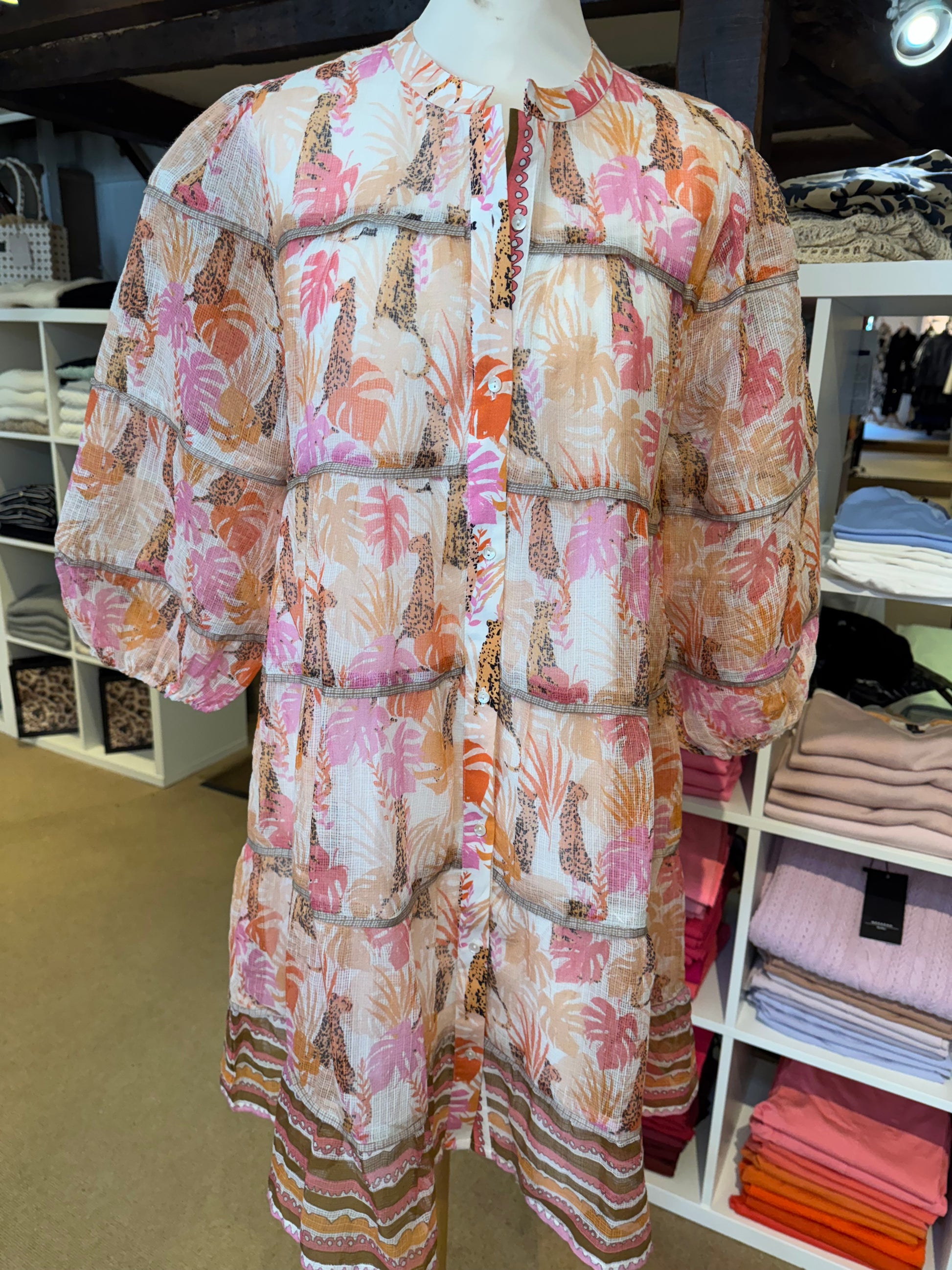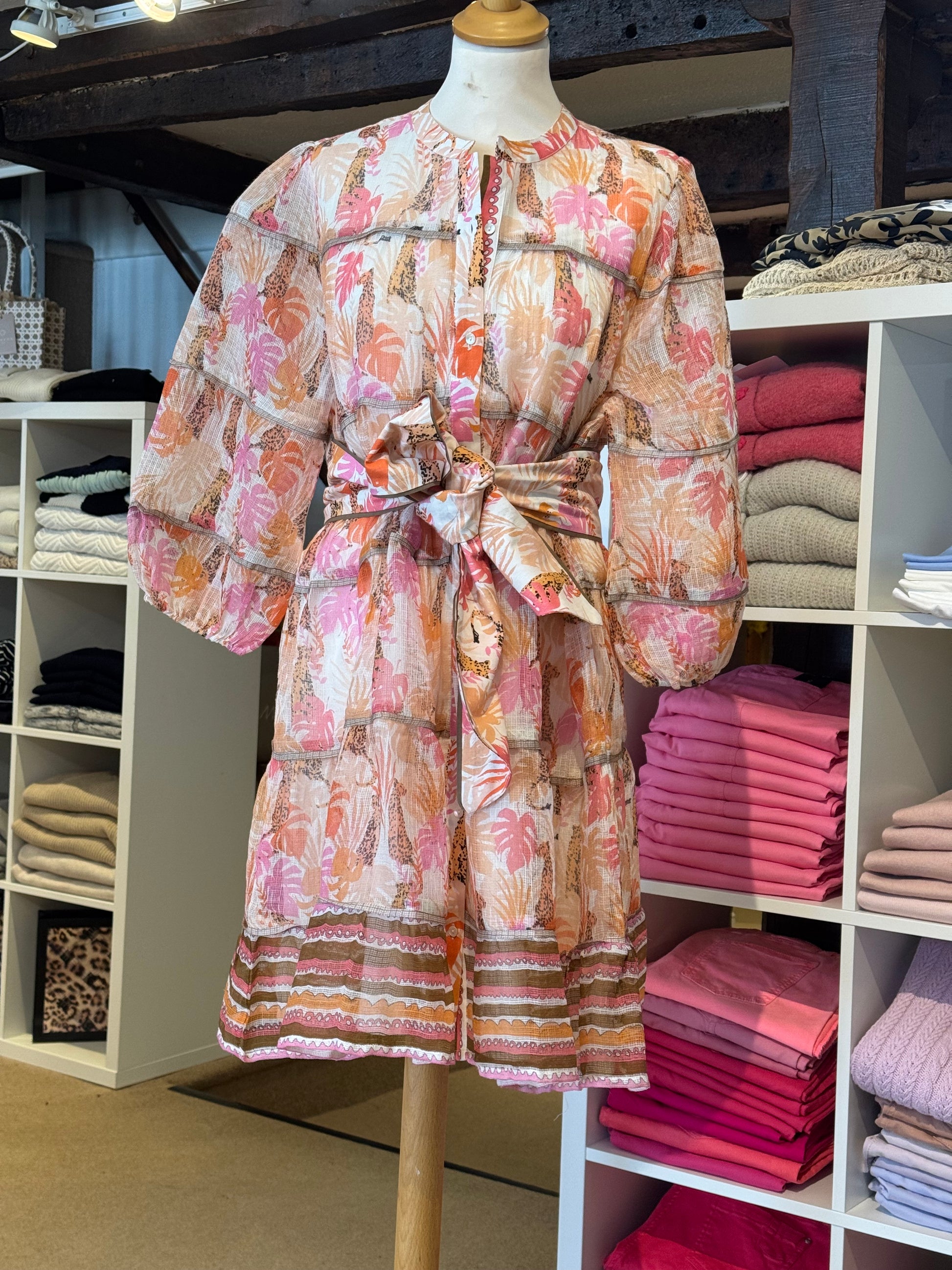 Chiffon print dress , Puff sleeves , matching cotton belt , Button through dress