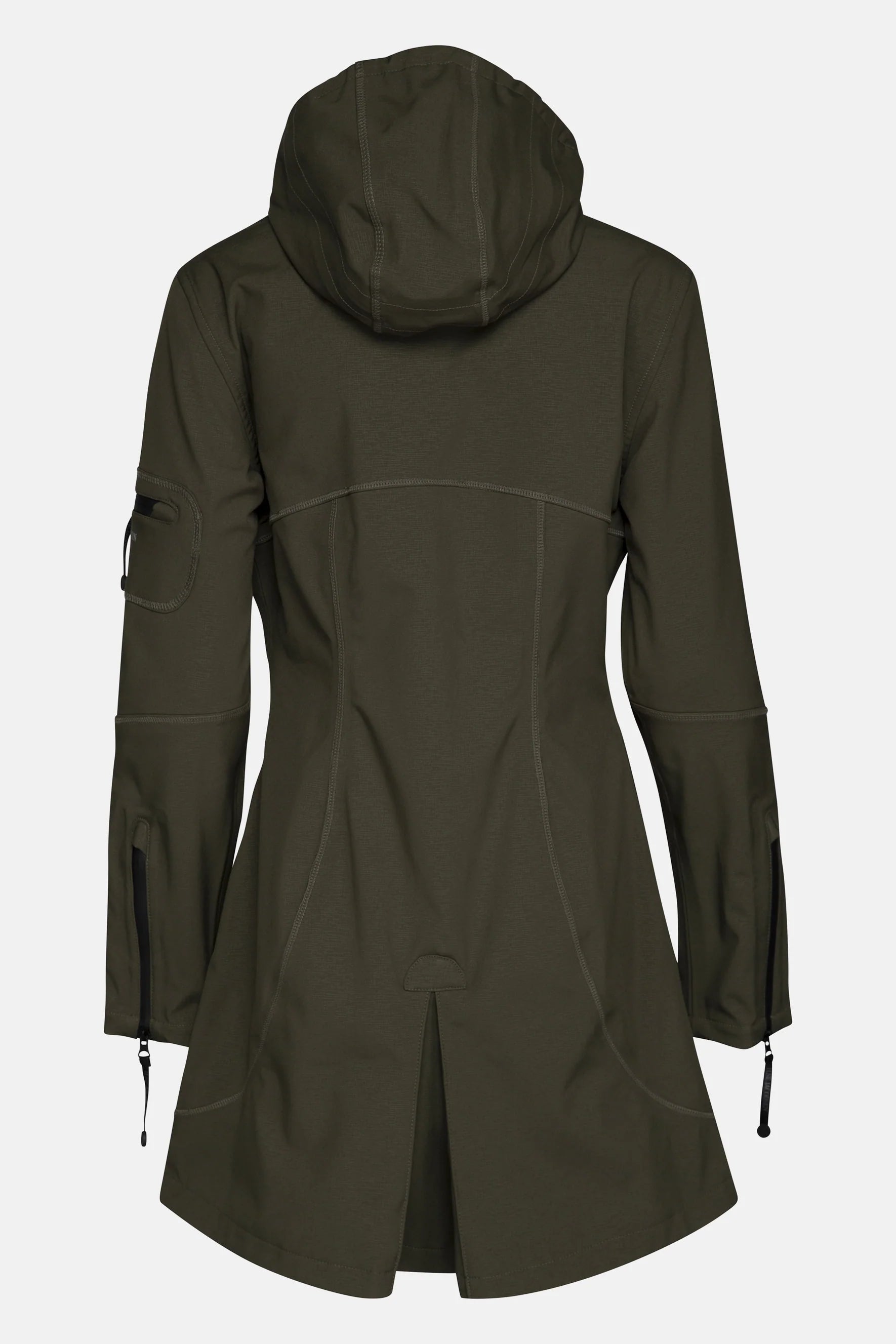The soft-shell raincoat is bonded with soft fleece on the inside, adding unique comfort and warmth. The raincoat has taped seams which prevents water from entering at the seams. Moreover, the style features a hood and a wide box pleat at back hem for easy movement.
