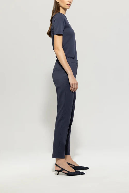 Slim-fit trousers made from soft cotton stretch gabardine fabric in a timeless look with creases. The trousers feature a partially elasticated waistband, two side slit pockets and an indicated back pocket.