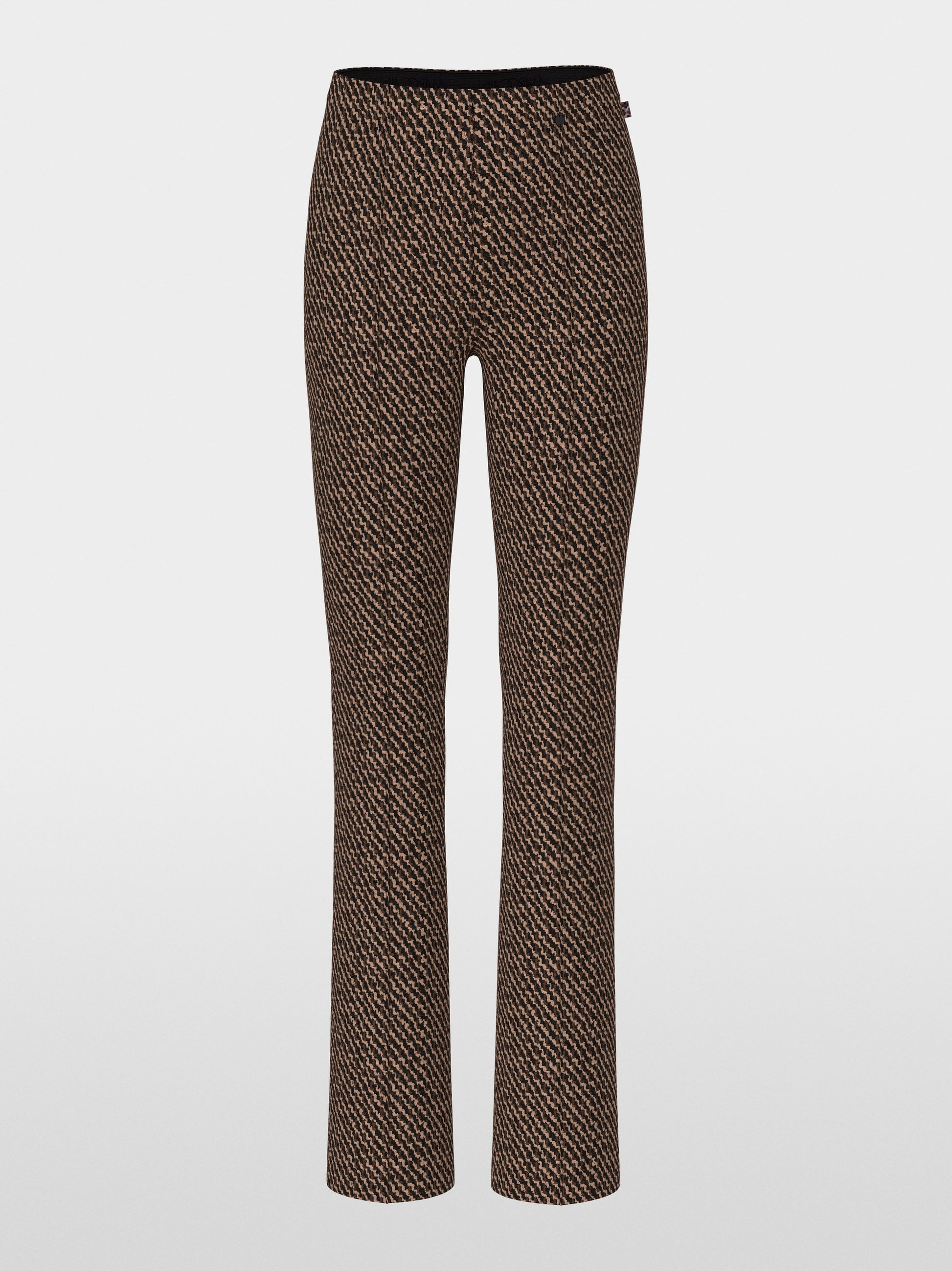 The FREDERICA feature a feminine cut, slightly flared legs and a regular waist height. Their knit material and modern all-over print make these trousers a real eye-catcher. A stitched crease completes their elegant look. The elasticated waistband ensures extra comfort.