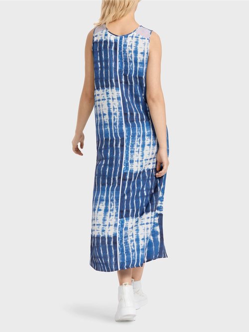 Casual dress with a slightly flared silhouette. The striped batik look gives this softly draping viscose dress its relaxed feel. The sporty style is underlined by a material mix of airy mesh inserts and colourful corded ribbons. The sleeveless dress also scores highly thanks to its casual neckline