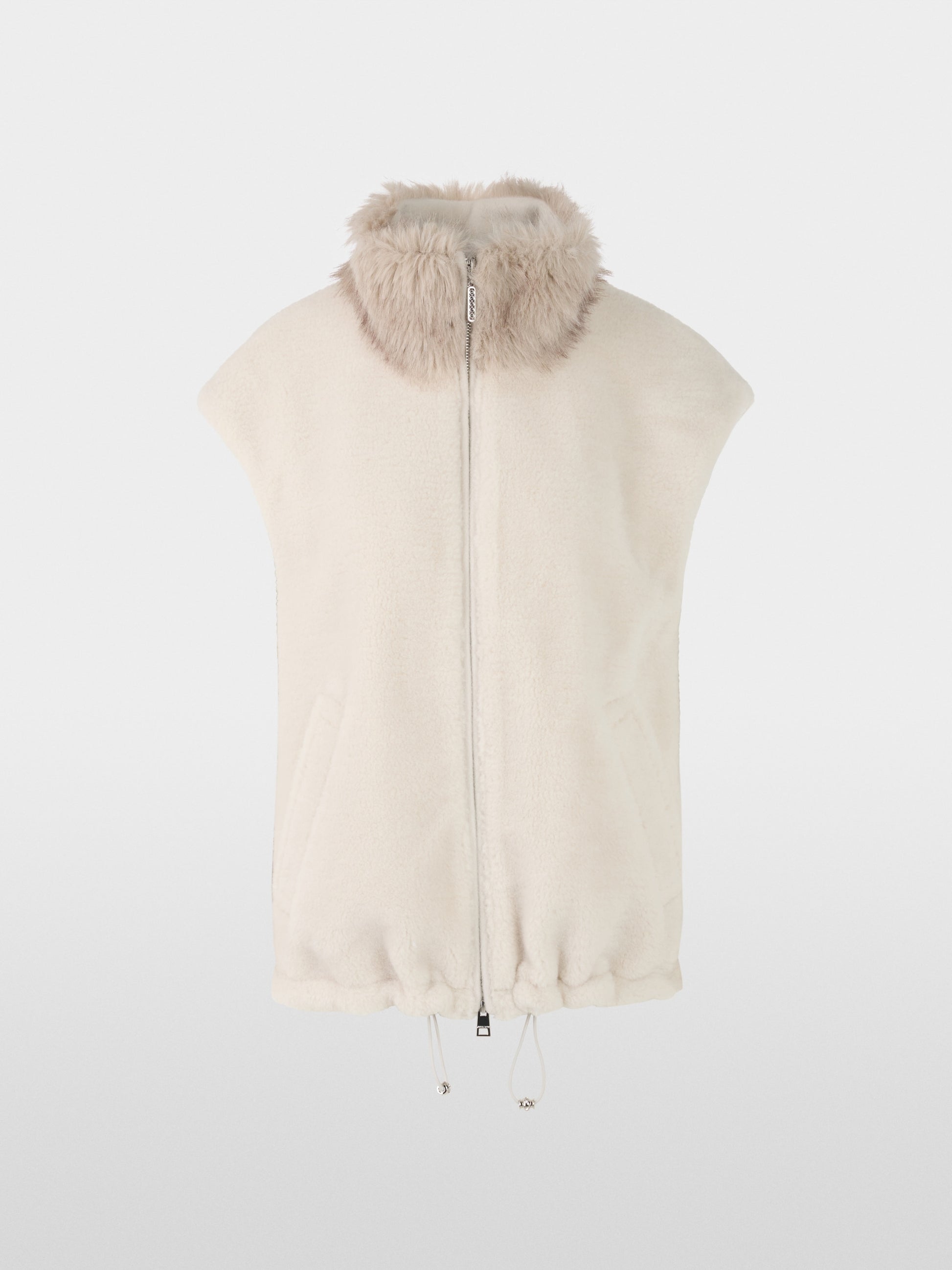 This cosy waistcoat with a long-haired faux fur collar provides stylish warmth on cold days. The collar is softly lined with wool on the inside. The drop shoulders and practical side pockets complete the design. The two-way zip ensures flexibility. Ideal for the modern layered look.