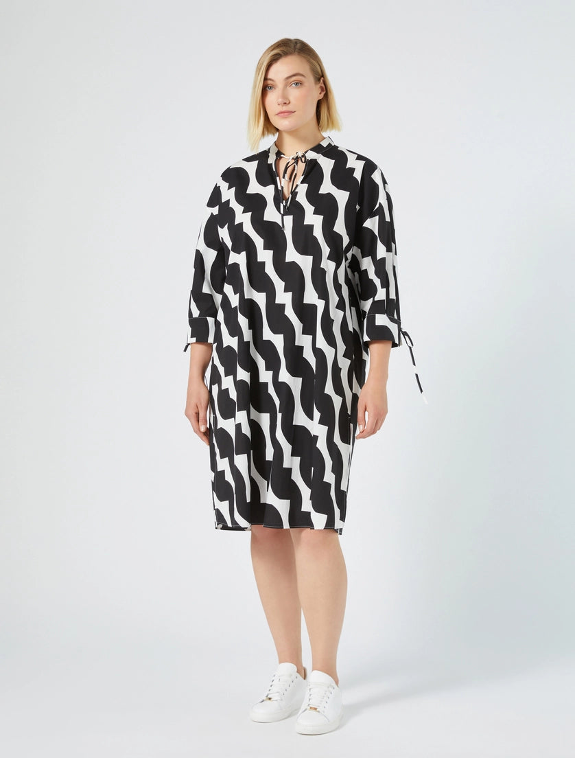 If you’re looking for a versatile and comfortable all-rounder that doesn’t compromise on style, then you can rest assured that this cotton dress with an exclusive print is the model for you. The lightweight fabric and sophisticated details will add a personal touch to your daily looks. With a slight flared fit, 3/4 length sleeves and a polo style neckline.