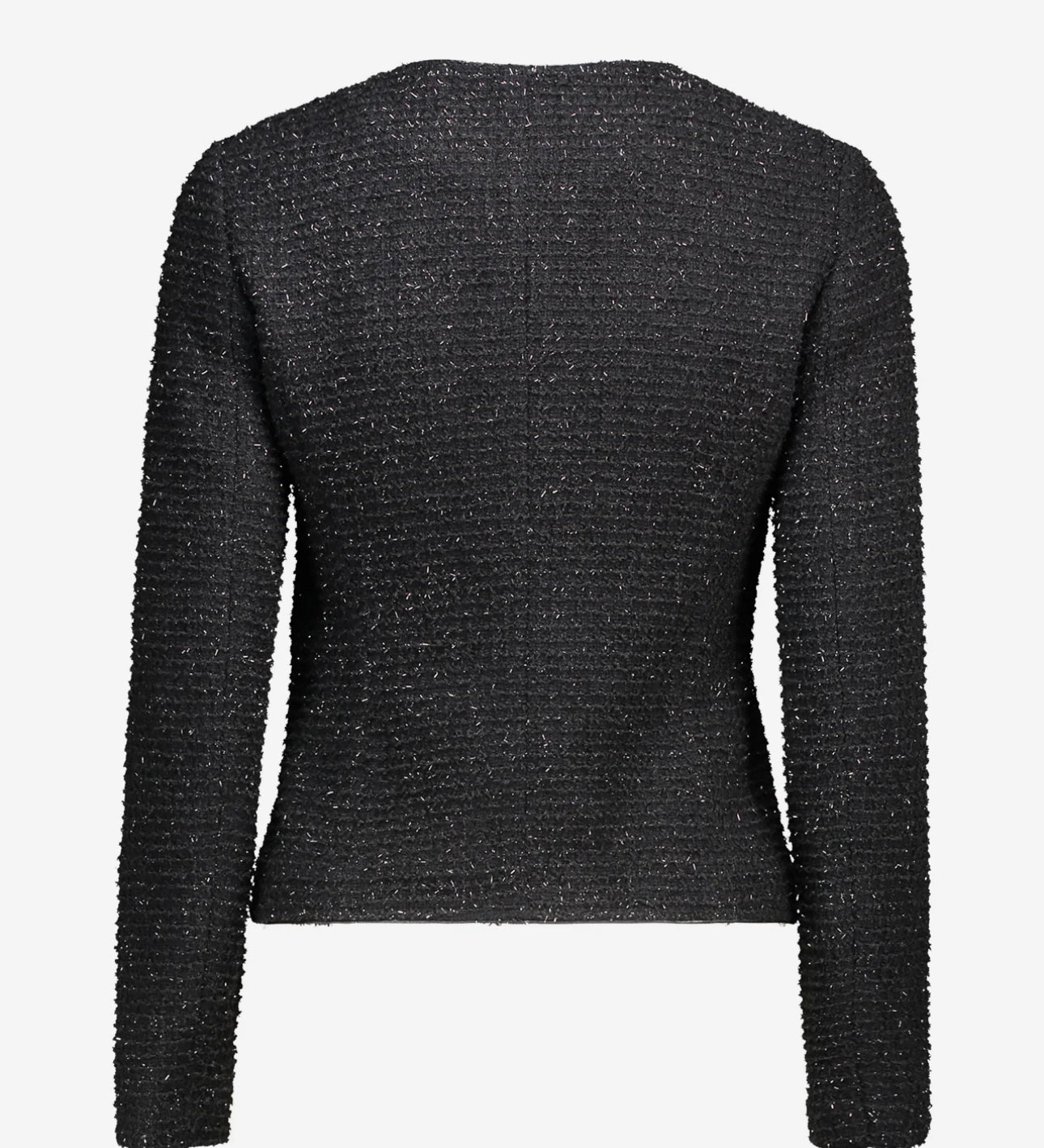 This gorgeous Penny Black jacket features a delicate knit combined with small glitter pieces. A simple round neck neck and full length sleeves, finally detailed with two front pockets and six black 'gem' buttons. Unlined .