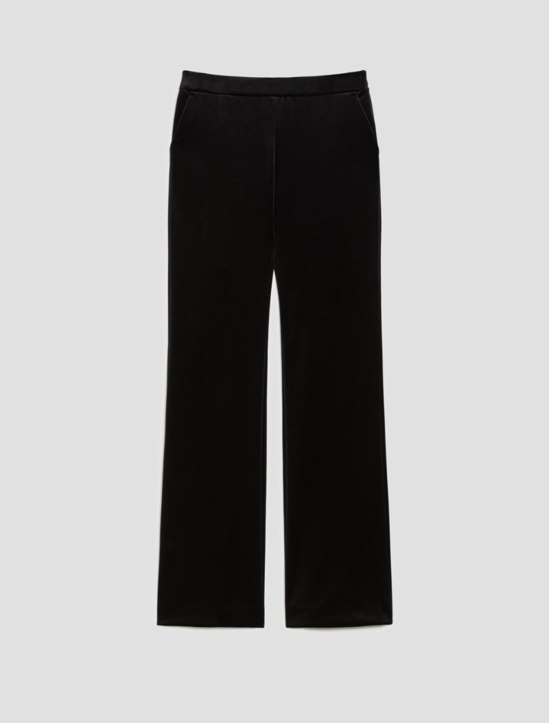 - Slim leg that flares slightly at the hem